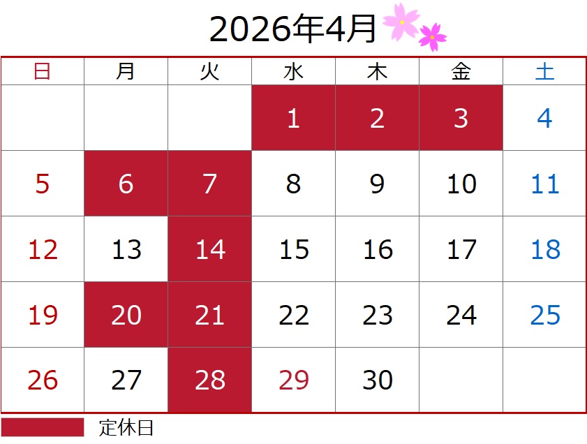 4月の定休日のご案内です!