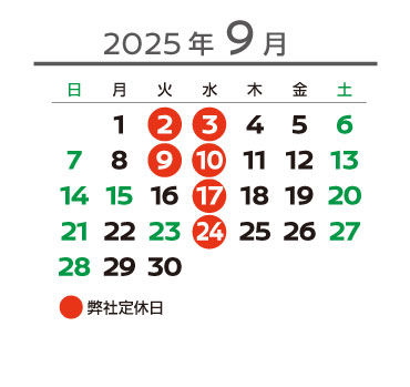 9月の定休日